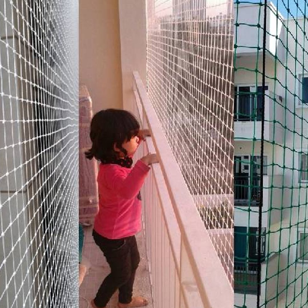 Beyond industrial use, our safety nets are perfect for residential areas, often used as balcony safety nets to cover the open sections above invisible grills or on older, less secure balconies. They are also used in homes and apartments to secure open staircases and voids, adding an extra layer of protection for toddlers and small pets. Our professional installation guarantees a secure, taut, and compliant safety system.